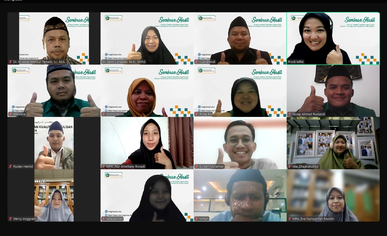 Selasa, 21 Mei 2024 – Program Magister Pendidikan Agama Islam (MPAI) Sekolah Pascasarjana UIKA Bogor kembali menyelenggarakan Seminar Hasil Tesis yang diikuti oleh enam mahasiswa. Kegiatan berlangsung secara online melalui media konferensi jarak jauh (zoom).